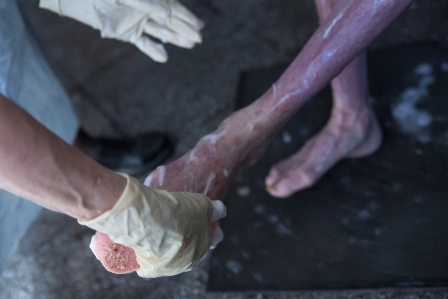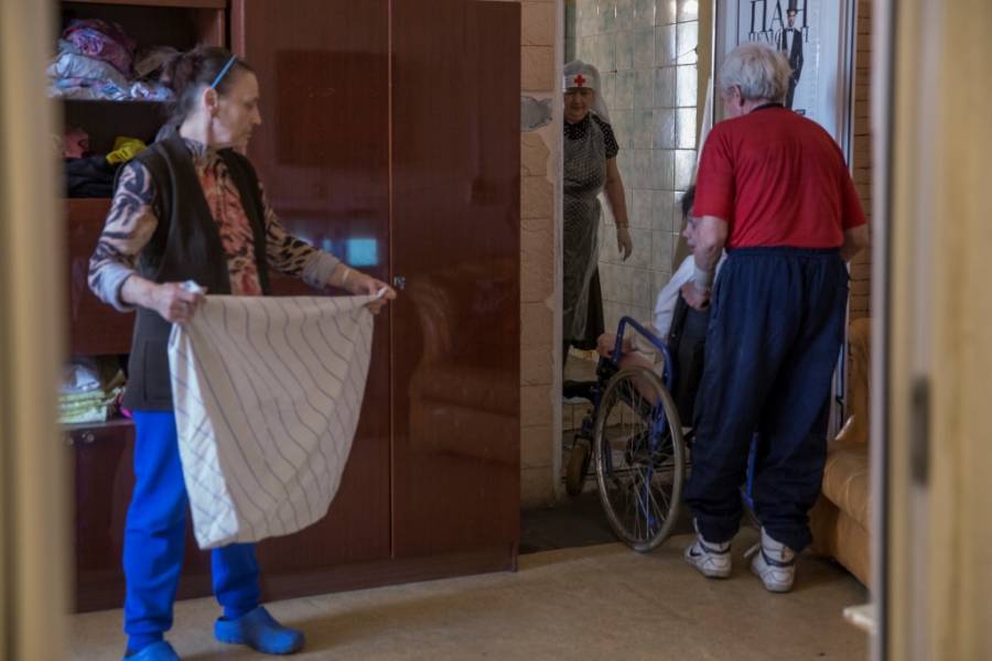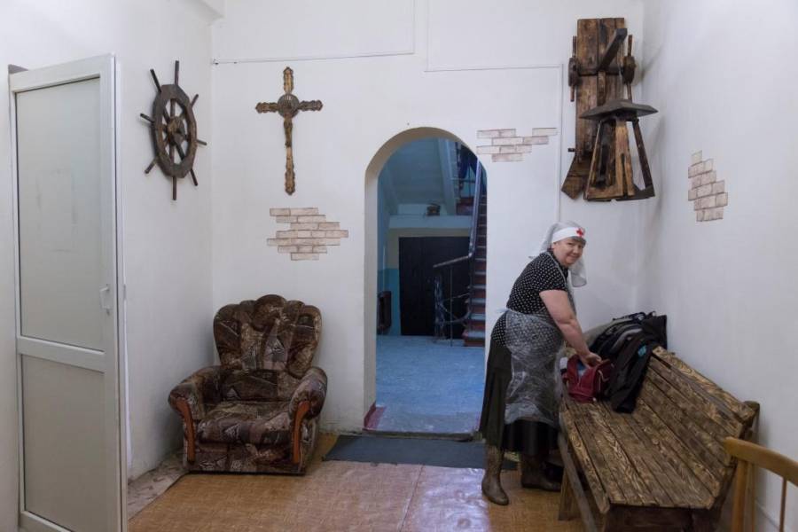 Некоторых больных к месту проведения гигиенических процедур, образно называемым «баня», везут на колясках и помогают пересаживать мужчины, которые также являются жителями организации. Все друг друга поддерживают, подбадривают. Совместная работа проходит бодро и благодатно.