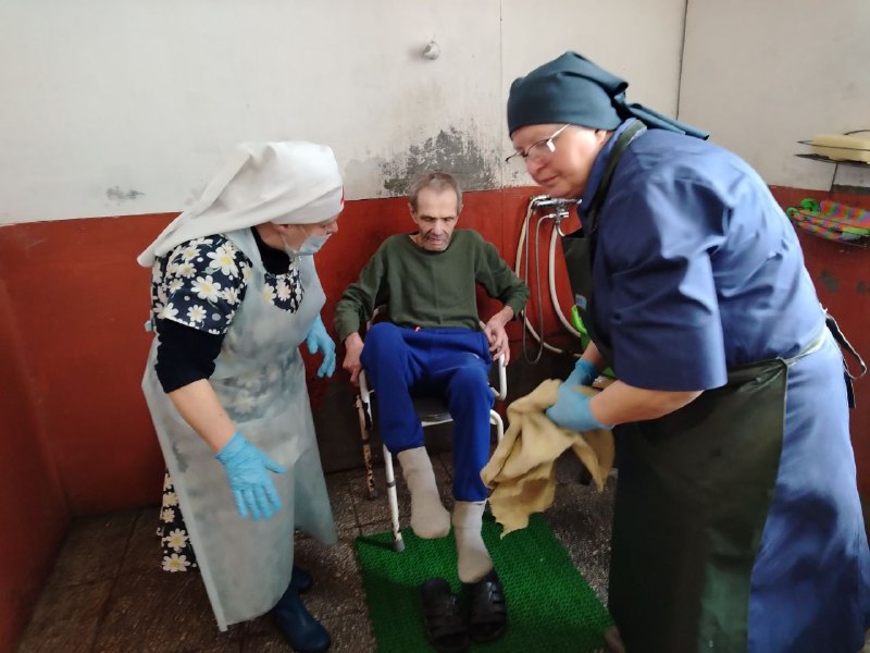 В назначенный день все стараются приехать пораньше, потому что успеть нужно много: помыть лежачих, накормить, прибрать помещения. Все это не простые механические действия, а живое общение с людьми — каждого обнять, ласковое слово сказать, приободрить и воодушевить.