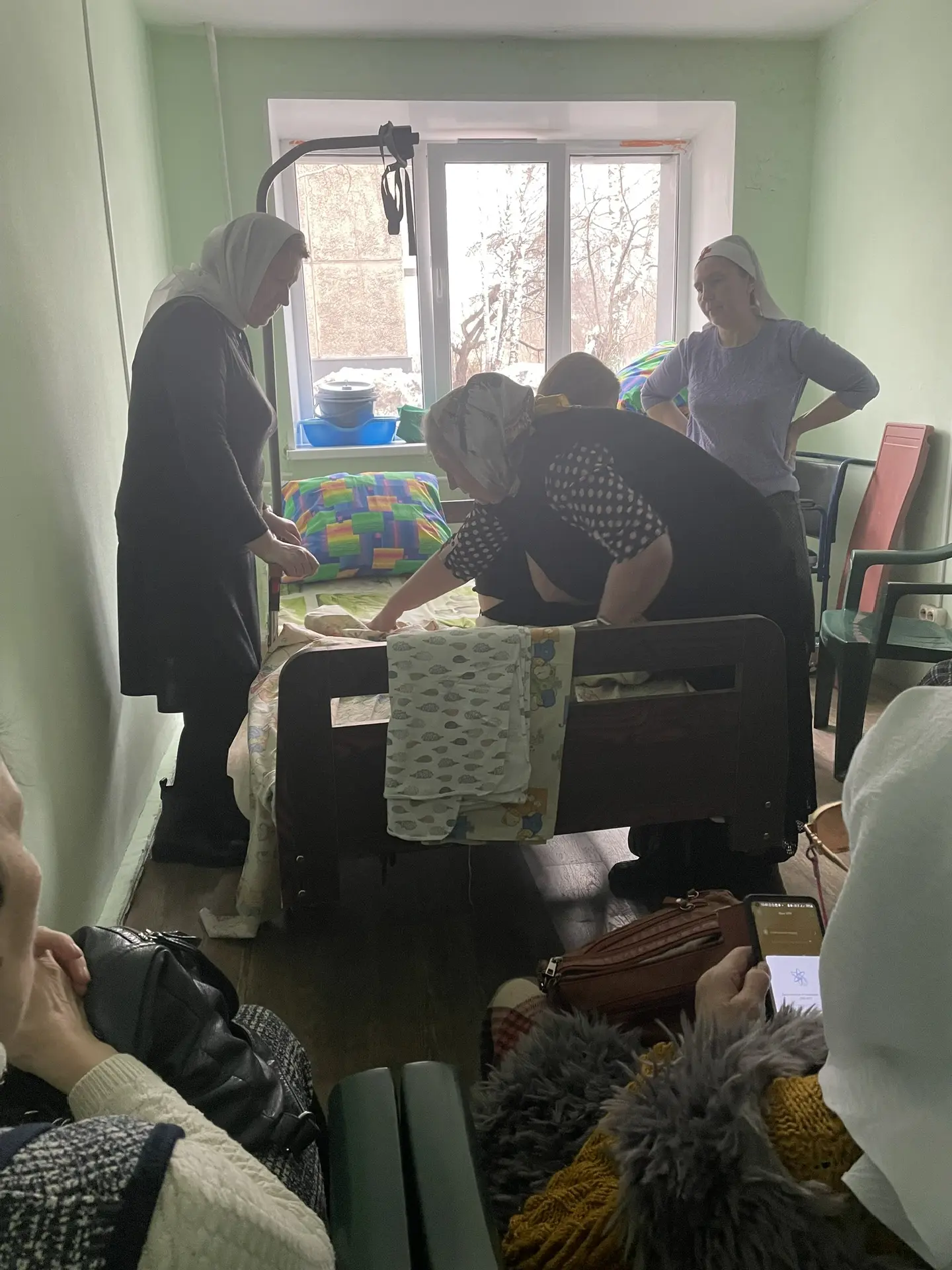 Кроме этого, у сестер прошел урок по правилам оказания помощи при передвижении маломобильных больных. Именно за такими подопечными сестры осуществляют уход на дому и в учреждениях. Ирина Николаевна, старшая сестра, поделилась с остальными сестрами техниками перемещения больного, которые она освоила во время недавнего обучения на курсах по уходу за паллиативными пациентами.