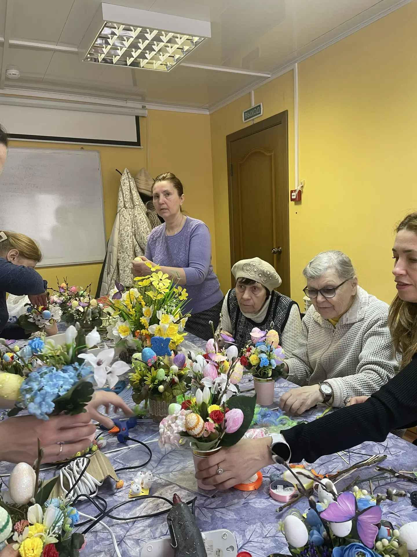 Субботний день у наших сестер милосердия выдался очень насыщенным. Сразу после Литургии в храме Демидовской городской больницы они отправились на мастер-класс, где вместе с добровольцами готовили подарки к Пасхе для подопечных нашего фонда, которым оказывается помощь на дому. Пасхальные композиции получились просто волшебными.